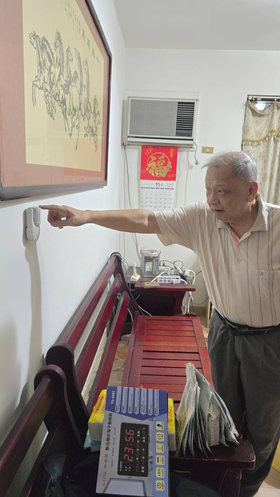 圖說:安裝在牆面的智慧感應器能偵測謝伯伯的日常活動,協助在異常時即時通知中保科技,提高獨居生活的安全性。