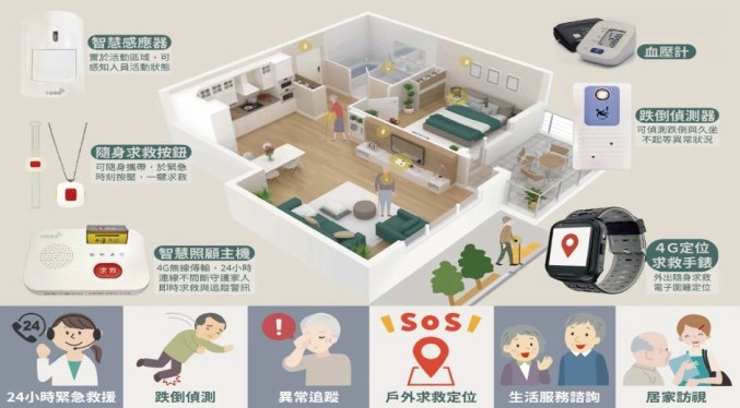 過緊急呼叫按鈕、每日問安、外出返家回報與每月到府關懷等服務,串接長照